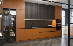 Metal malzemenin mekâna kazandırdığı ağırlık; şöminede, şöminenin altında kendini gösteriyor.